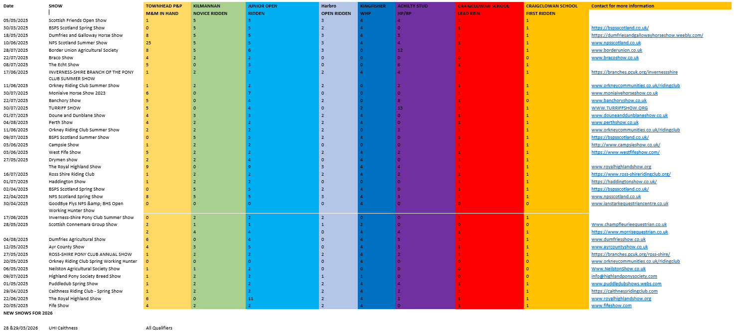 We have a new show to add for 2026 – UHI show, Caithness on 28th & 29th March 2026 which will host all qualifiers.